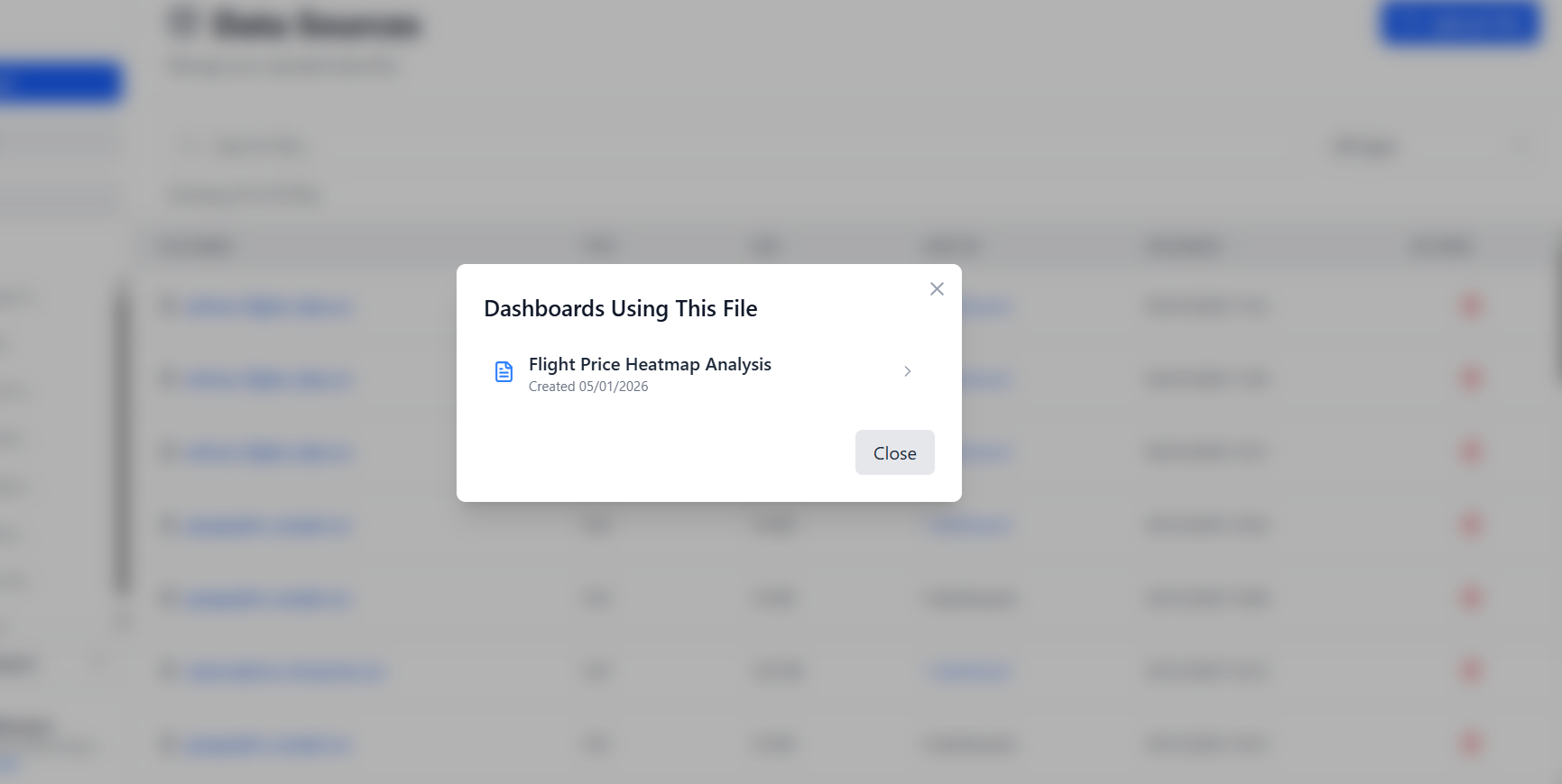 See exactly which dashboards depend on each file and navigate to them instantly.